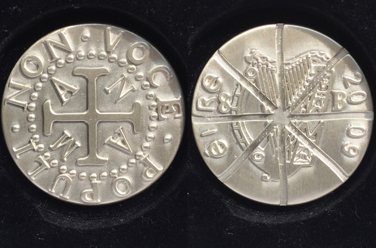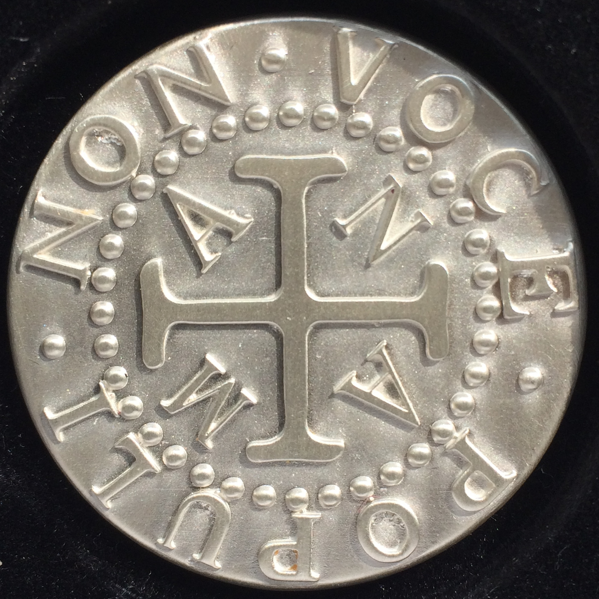 A sterling silver commemorative coin installation. A play on the words ANAM NAMA and PIRATES 37mm Diameter 2014.